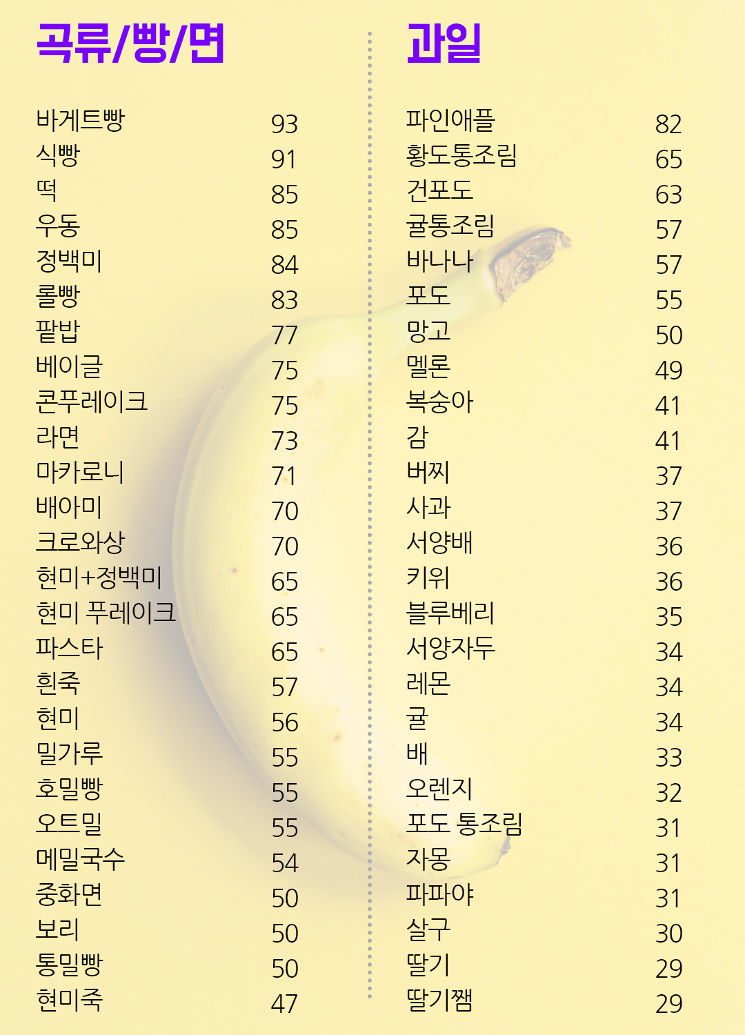GI 지수 낮은 음식 추천 / GI 지수표 및 섭취시 주의점